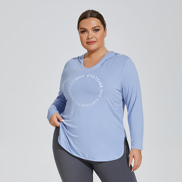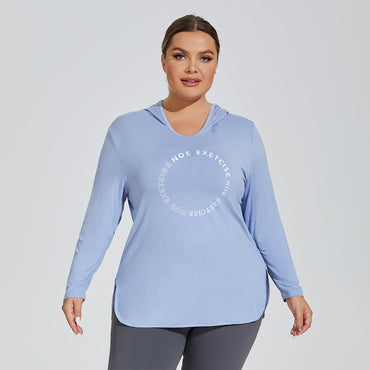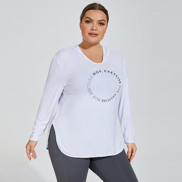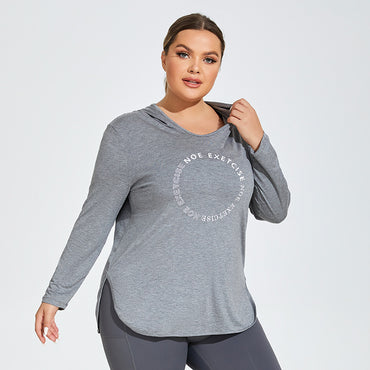 Plus Size Printed Logo Sports Long Sleeve Breathable Fitness Running Hooded Top Loose Yoga Clothes Women Overall