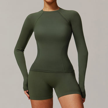 Threaded Tight Seamless Long Sleeve Yoga T shirt Quick Drying Workout Clothes Women Running Sport Long Sleeve Top