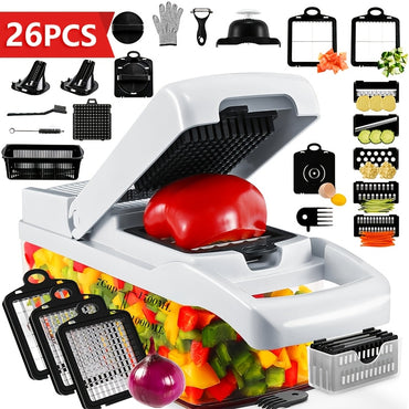 14/15/25/26pcs Set Of Multi-functional Stainless Steel, ABS, And PP Vegetable Cutters, Shredders, And Slicers That Do Not Require Batteries, with Adjustable Blades And A Large Capacity Basket, Making It A Kitchen Tool for Quickly Preparing Meals.