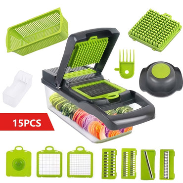 15pcs/set, Vegetable Multi-function Cutter-suitable for Kitchen, Family Dining Room, People Who Like to Cook, Vegetable Knife That Can Change Different Blades, Easy to Chop Vegetables, Fruits, Vegetable Shreds, Chopper Vegetable Cutter