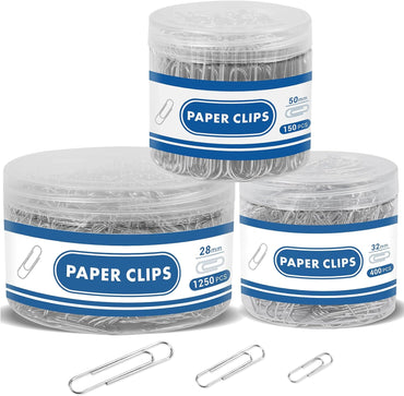 1800 Paper Clips Assorted Sizes Large, Medium and Small, Durable and Rustproof, Paperclips for Office School and Personal Use, Office Supplies Document Organizing (50mm, 33mm, 28mm) (Silver)