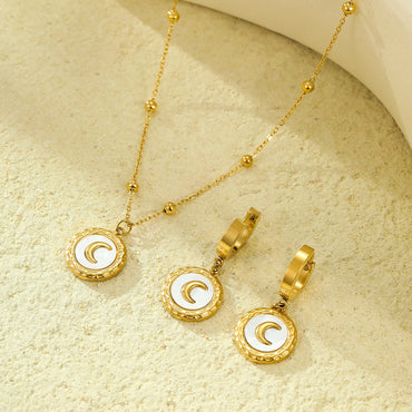 18K Stainless Steel Shell Moon Necklace Niche Retro Easy Matching Embellished Titanium Steel Necklace Earrings