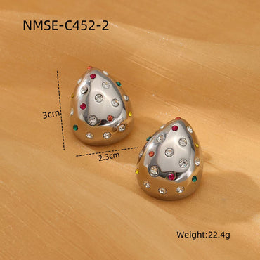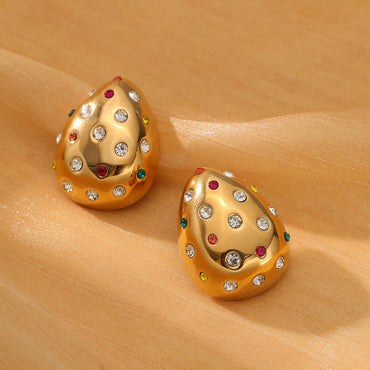 18K Gold Chubby Water Drop Stainless Steel Earrings Women Fashionable Diamond-Embedded Titanium Steel Ear Studs Earrings
