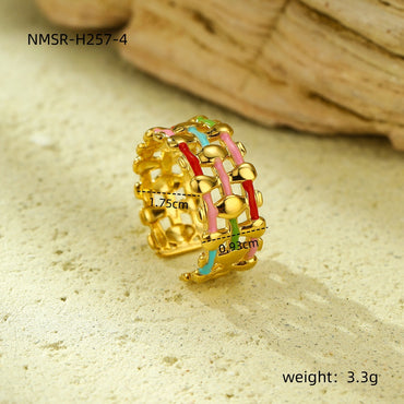 18K Gold Plated Stainless Steel Ring Women Geometric Abstract Colorful Oil Necklace Ring Ornament