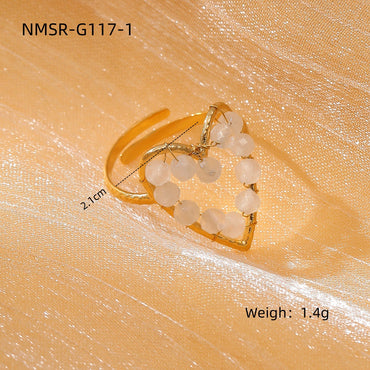 18K Gold Stainless Steel Open End Pearl Ring Natural Stone Love Inlaid Pearl Ring Women