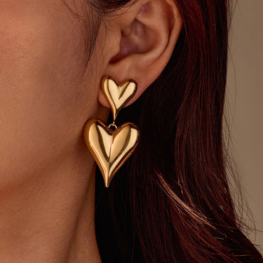 Cool Stainless Steel Hollow Out Cutout Heart Shaped Tassel Earrings 18K Gold Texture Titanium Steel Earrings Ornament