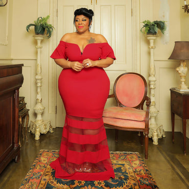 Plus Size Women Clothes Lace Evening Dress High Quality Solid Color Dress