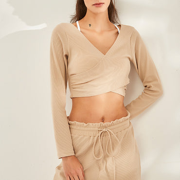 Yoga Workout Clothes Women Large V-neck Casual Breathable Running Sport Long Sleeve Quick Drying Clothes