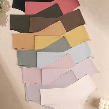 12-Pack Seamless Fiber Women'S Underwear, Solid Color One-Piece Quick-Dry Briefs, Elegant Knit Fabric, 75% Polyamide 25% Elastane, 180gsm - Assorted Colors
