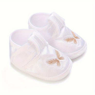 Golden Butterfly Print Soft Sole Baptism Shoes for Children