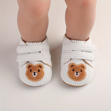 [Cartoon Bear Baby Sneakers] Anti-Slip, Comfortable Cartoon Bear Baby Sneakers | Hook-and-loop Fastener, Soft EVA Insole, Perfect for 0-1 Year Olds | White, Blue, Gray, Toddler Shoes for Spring, Autumn, Winter