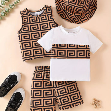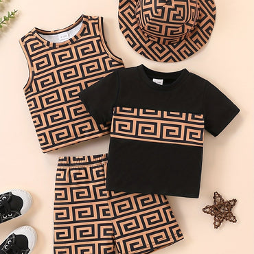 Boys' Summer Casual Comfortable and Fashionable Geometric Print Four-piece Set