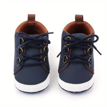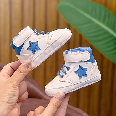 [Casual Infant Sneakers] Casual Mid-Top Infant Sports Sneakers, PU Upper with Fabric Inner & Sole, Adjustable Closure | Solid Color, Daily Wear, Spring/Fall Season, Ages 0-1, Indoor Outdoor Sneakers