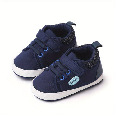 Spring and Autumn Newborn Baby Shoes 0-3 Months Boys Canvas High-Top Soft Sole Design Indoor Walking Shoes