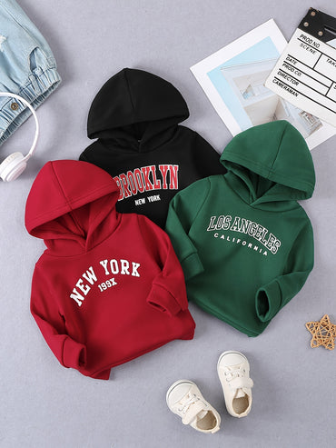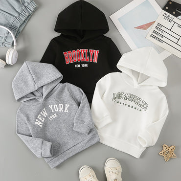 3pcs COVIVIKY Boys' Hooded Sweatshirts - Brooklyn, Los Angeles, New York City Print - Cozy Polyester Blend, Stretchy & Machine Washable - Ideal for Fall/Winter Casual Wear, Cute Sweatshirts