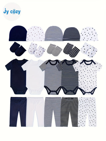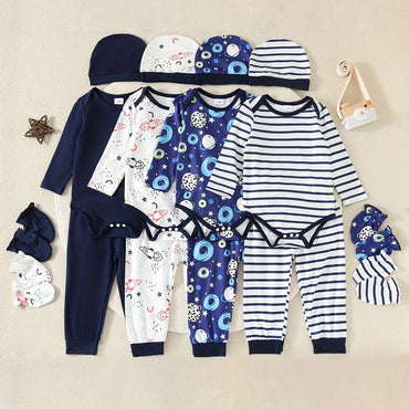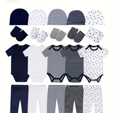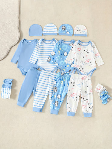 20pcs Bamboo Fiber Baby Boy Set, 5 Tops + 5 Pants + 5 Hats + 5 Pairs of Gloves, for Outdoor