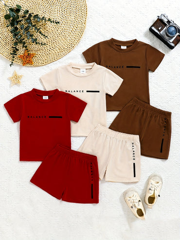 A 6pcs Set of Baby Boy Clothing Featuring a Short-Sleeve Top with Letter Prints And Shorts, Designed for a Comfortable And Casual Style, Perfect for Summer Outings And Everyday Wear, for Outdoor