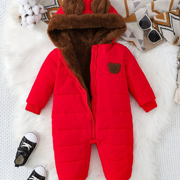 [Winter Baby Hoodie] 100% Polyester Plush Winter Warmth Baby Boy's Hooded Onesie | Casual Solid Color Loose Fit with Chop Staming Detail, Woven Boys Outerwear for Autumn and Winter, for Outdoor