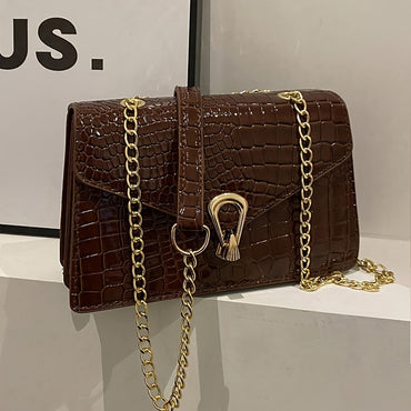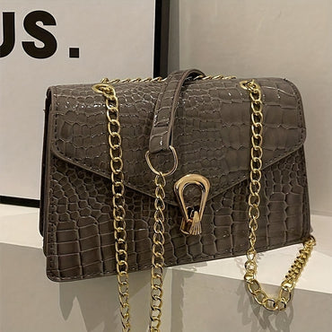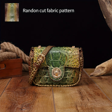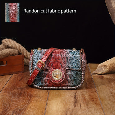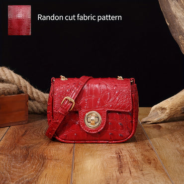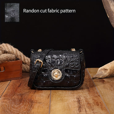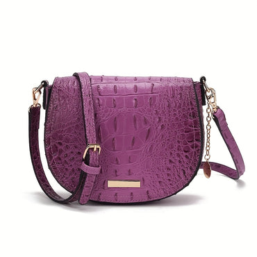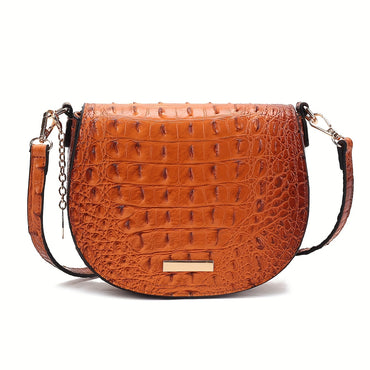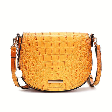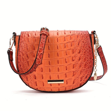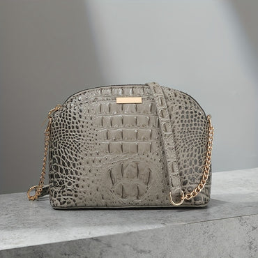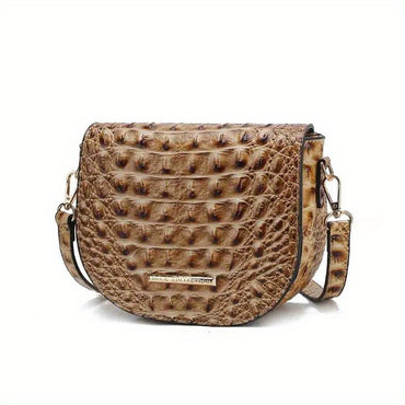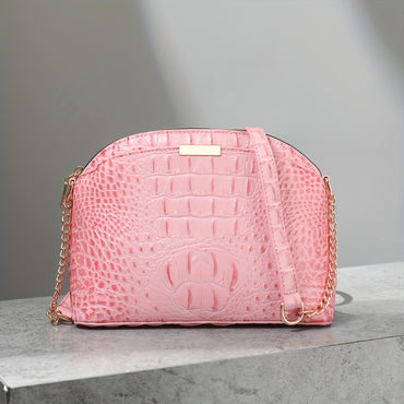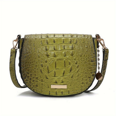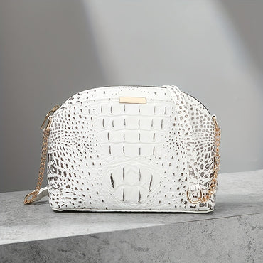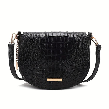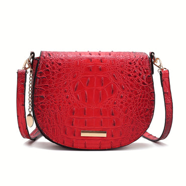 Elegant Crocodile Embossed Crossbody Bag, Textured Shoulder Handbag & Purse for Women