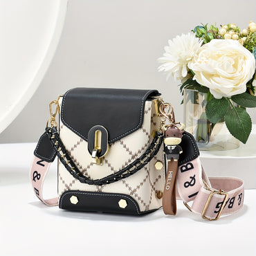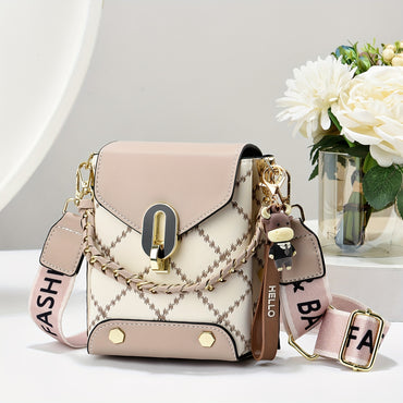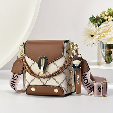 Pattern: Argyle Material: Faux leather Closure: Turn-lock Feature: Adjustable strap Theme: None Pattern Style: Quilted Accessory: Messenger Bag...