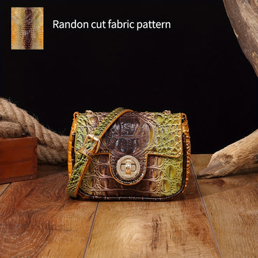 Women's Mini Crossbody Phone Bag, Ethnic Retro Stitching Design, Artificial Crocodile Leather Shoulder Bag
