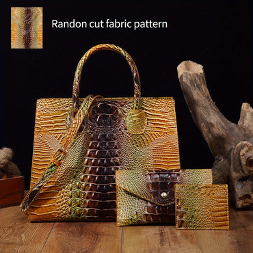 3pcs Colorful Crocodile Pattern Bag Set, Gradient Color Handbag, Women Tote Bag with Clutch Wallet And Credit Card Holder Coin Purse