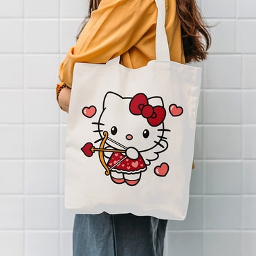 Sanrio Hello Kitty Canvas Tote Bag | Durable Single-Sided Printing | Fixed Shoulder Straps | Machine Washable | Casual Style for Work & Travel