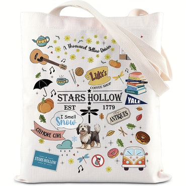 Stars Hollow Inspired Canvas Tote Bag, Preppy Style, Durable Shoulder Strap, Unlined, No-Closure Design, with Fixed Straps for Lorelei & Rory Fans, Ideal for Students & Everyday Use