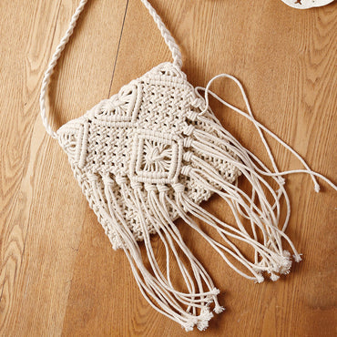 Simple Tassel Crossbody Straw Bag Retro One Shoulder Cotton Thread Woven Bag Summer Beach Bag