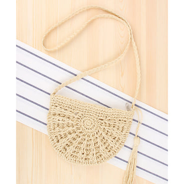 Simple Hollow Out Cutout Tassel Crossbody Straw Bag Hand-Woven Bag Summer Vacation Beach Bag