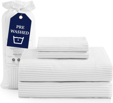 HC Collection Bed Sheets Set, HOTEL LUXURY Platinum Collection 1800 Series Bedding Set, Deep Pockets, Wrinkle & Fade Resistant, Hypoallergenic Sheet & Pillow Case Set (Queen, White)