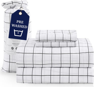 Size: QueenMaterial: MicrofiberColor: WhitePattern: CheckeredBrand: BYSUREDEEP POCKETS: Fits mattresses up to 15" deep with elastic around the fitted...