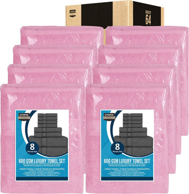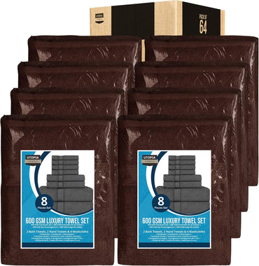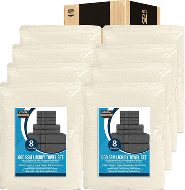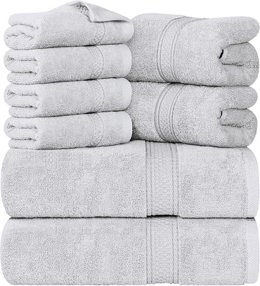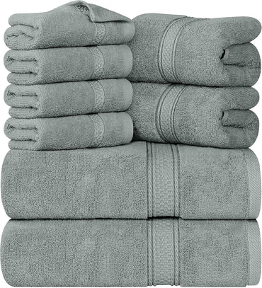 Utopia Towels 8 Piece Premium Towel Set, 2 Bath, 2 Hand, and 4 Wash Cloths, 600 GSM 100% Ring Spun Cotton, Highly Absorbent Towels for Bathroom, Gym, Hotel, and Spa, Grey