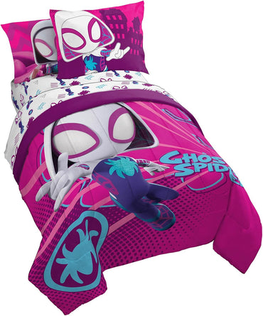 Marvel Spidey & His Amazing Friends Ghost Spider Gwen 5 Piece Twin Bed Set - Bedding Includes Comforter & Sheet Set - Super Soft Fade Resistant Microfiber