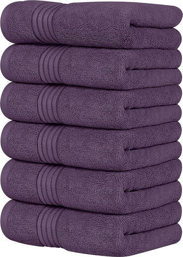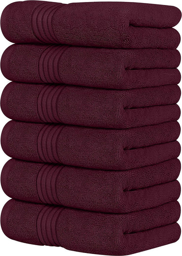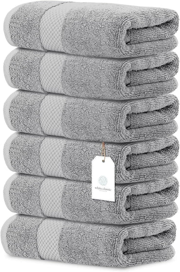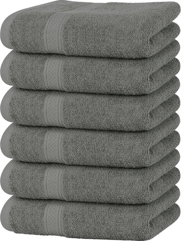 Premium Bath Towel Set - 24 x 48 Pack of 6 100% Cotton Terry Towels for Bathroom - Quick Dry - Highly Absorbent - Soft Feel - Pool - Spa - Gym - Hand Towel for Daily Use - Grey