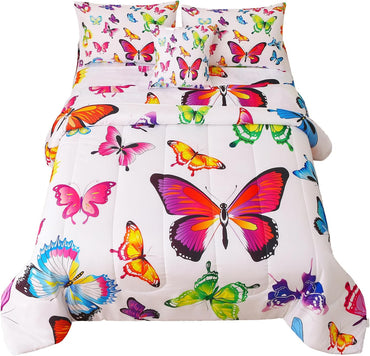 JQinHome Twin Pink Purple Comforter Set, 6 Piece Bed in A Bag 3D Colorful Bedding Set for Girls Kids (1 Comforter,2 Pillowcases,1 Flat Sheet,1 Fitted Sheet,1 Cushion Cover)(Pink Purple)