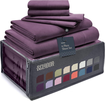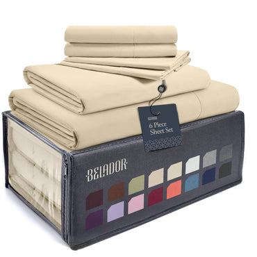 BELADOR Silky Soft Sheet Set - Luxury 6 Piece Bed Sheets for Queen Size Bed, Secure-Fit Deep Pocket Sheets with Elastic, Breathable Hotel Sheets & Pillowcase Set, Wrinkle Free Oeko-Tex Sheets