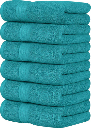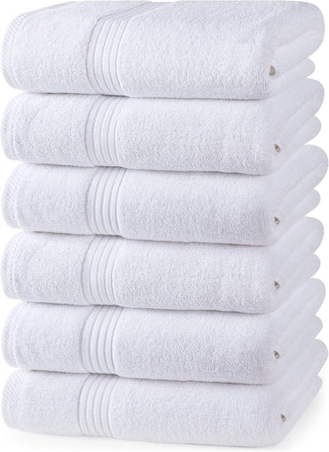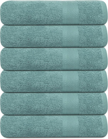 Towel and Linen Mart 100% Cotton 6 Pack Bath Towel Set, Quick Dry, Super Absorbent, Light Weight, Soft, (27 x 54 Pack of 6) Beige, White, Grey, Sky Blue, SAGE Green, Navy
