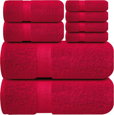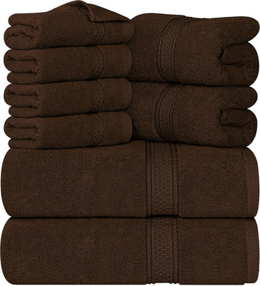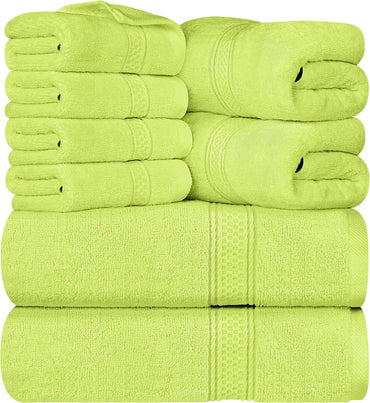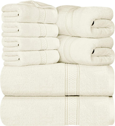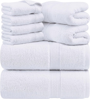 Infinitee Xclusives Luxury 100% Cotton Towel Set – 8 Piece Bathroom Towel Set (2 Bath Towels, 2 Hand Towels, 4 Washcloths) – Soft & Absorbent Towels for Bathroom (Brilliant White)