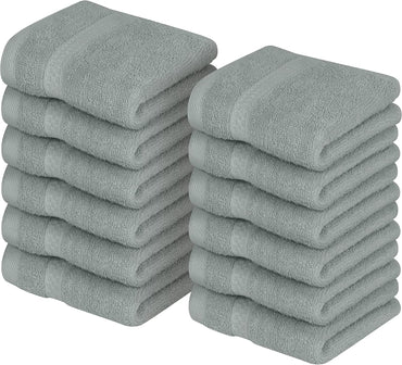 Utopia Towels 12 Pack Premium Wash Cloths Set, 12 by 12 Inches, 100% Cotton Ring Spun, Highly Absorbent and Soft Feel Essential Washcloths for Bathroom, Spa, Gym, and Face, Grey