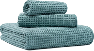 New Microfiber Waffle Bath Towels, 3 Pieces, Oversized, Soft, Absorbent, Fast Drying, Lint Free, Includes Bath, Face and Hand Towels
