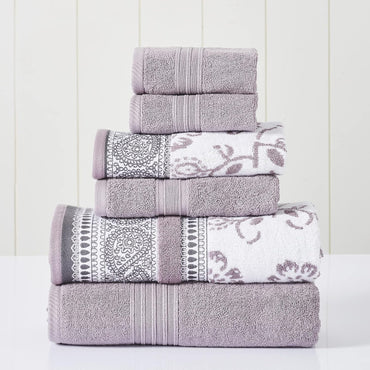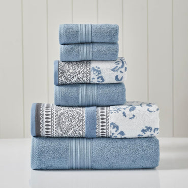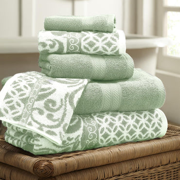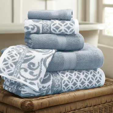 Modern Threads Trefoil Filigree 6-Piece Reversible Yarn Dyed Jacquard Towel Set - Bath Towels, Hand Towels, & Washcloths - Super Absorbent & Quick Dry - 100% Combed Cotton