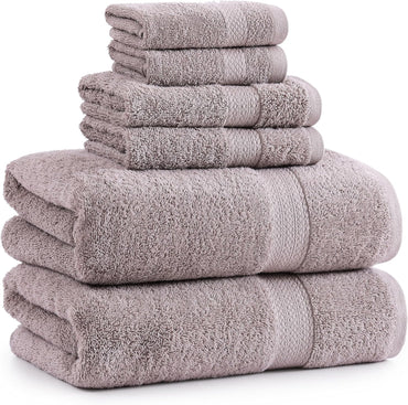 LANE LINEN Grey Bath Towels for Bathroom Set - 100% Cotton 6 Pc Towels Set, Absorbent Bathroom Towel Set, 2 Bath Towels, 2 Hand Towels, 2 Wash Cloths for Your Body and face - Grey Bath Towels Set