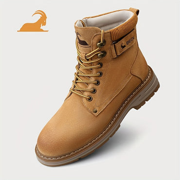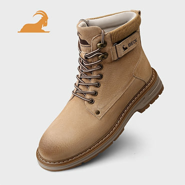 BECK Men's Genuine High-Top Boots - Casual & Outdoor Hiking Shoes with Rubber Sole, Lace-Up Design, Round Toe, All-Season Wear, Tan Color, Durable & Stylish for Everyday Use, Hiking Boots