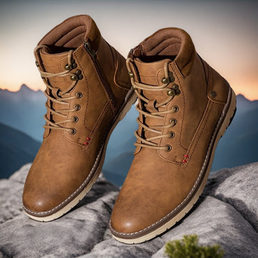 1pair VOSTEY Men'S All-Season Short Boots - Comfortable Faux Hiking & Outdoor Chukka Boots with Round Toe, Zipper & Lace Closure, Trendy Sports Style for Camping & Casual Wear