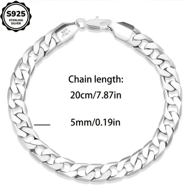 925 Sterling Silvery Men'S Cuban Chain Bracelet, Street Hip-hop Personality, Fashion And Handsome Trend, The Perfect Gift For Husband, Family, Anniversary, Birthday, Valentine'S Day, Father'S Day, Halloween Thanksgiving, Christmas Gifts, Gift Boxes