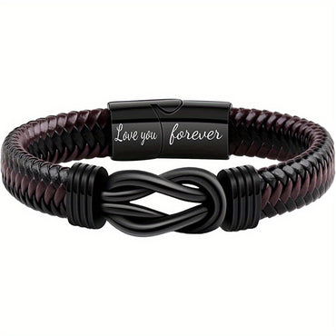 2pcs Multi-Layer Leather Bracelet For Men, Elegant Style With Stainless Steel Infinity Charm, Perfect Gift For Son