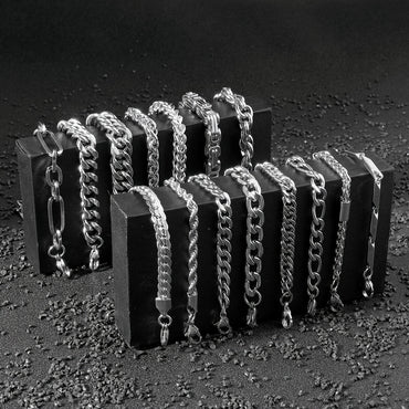 Set Of 15 Stainless Steel Hip-hop Thick Bracelets For Men, Embossed Bracelets, Cuban Bracelets, Fashionable Chains, Punk Rock Jewelry Party Gifts