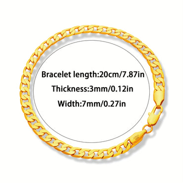 1pc Elegant Golden 7mm Cuban Link Chain Bracelet with Safety Clasp - Stylish Accessory, Ideal Holiday Gift, Secure Wristband|Polished Finish|Safety Clasp Design