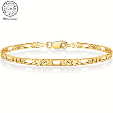 925 Sterling Silvery Plated 18K Gold Plated Figaro Bracelet for Men and Women, A Gift for Men, Boyfriends, Friends, Suitable for Daily, Party Wear, with a Beautiful Gift Box